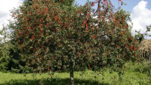 Nous sommes enfin heureux dans cette grande maison, avec derrière un magnifique espace plein d’arbres fruitiers, des pommiers, pruniers et cerisiers :